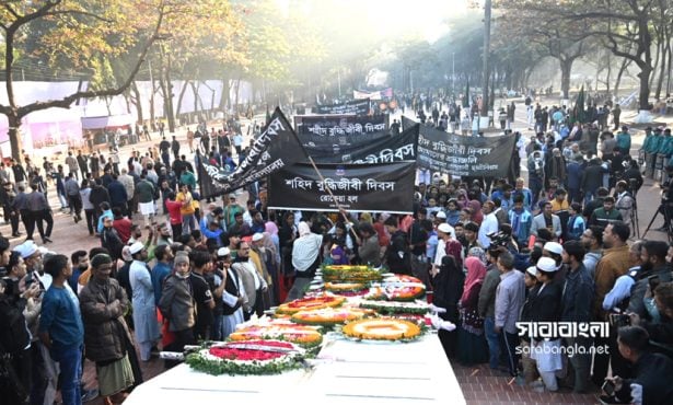 রোববার (১৪ ডিসেম্বর) সকাল ৭টা দিকে প্রথমে রাষ্ট্রপতি, পরে প্রধান উপদেষ্টা পুষ্পস্তবক অর্পণ করে শহিদ বুদ্ধিজীবীদের প্রতি গভীর শ্রদ্ধা নিবেদন করেন।