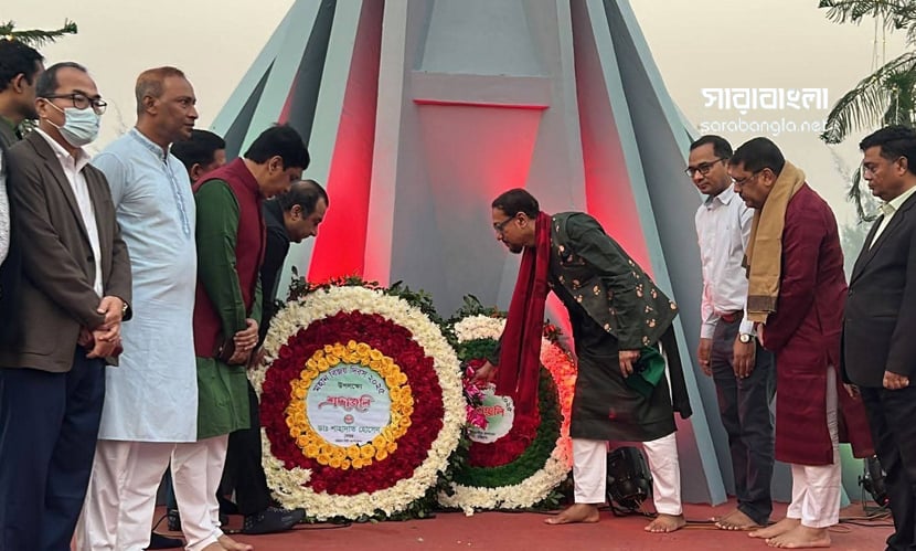চমেক মেয়র ডা. শাহাদাত হোসেন ফুল দিয়ে শ্রদ্ধা নিবেদন করছেন। ছবি: সারাবাংলা