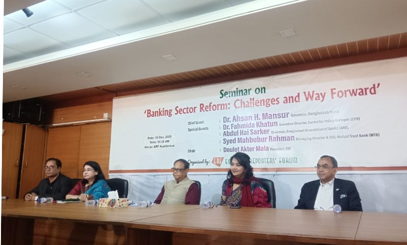 বৃহস্পতিবার (১৮ ডিসেম্বর) রাজধানীর পল্টনে ইকোনমিকস রিপোর্টার্স ফোরাম আয়োজিত ’ব্যাংকিং সেক্টর রিফর্ম: চ্যালেঞ্জের অ্যান্ড ওয়ে ফরওয়ার্ড” শীর্ষক সেমিনারে প্রধান অতিথির বক্তব্যে এসব কথা বলেন বাংলাদেশ ব্যাংকের গভর্নর ড. আহসান এইচ মনসুর।