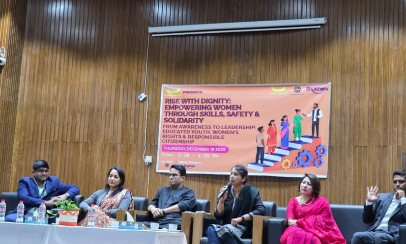 ঢাকা: নারীর ক্ষমতায়ন, ডিজিটাল নিরাপত্তা এবং দায়িত্বশীল নাগরিকত্ব বিষয়ে সচেতনতা ও নেতৃত্ব বিকাশে গুরুত্বপূর্ণ ভূমিকা রাখতে ঢাকা বিশ্ববিদ্যালয়ে (ঢাবি) অনুষ্ঠিত হলো ‘রাইজ উইথ ডিগনিটি: এমপাওয়ারিং উইমেন থ্রু স্কিলস, সেফটি অ্যান্ড সলিডারিটি’ শীর্ষক এক প্যানেল আলোচনা সভা।