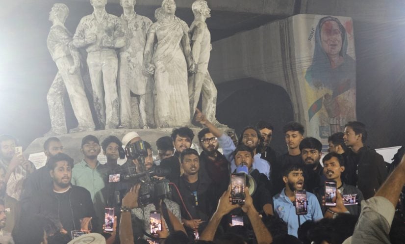 হল পাড়ায় ছাত্রশক্তির নেতারা ও স্লোগান দেন ‘দিল্লি না ঢাকা, ঢাকা-ঢাকা’, ভারতীয় আগ্রাসন, রুখে দাও, রুখে দাও’, ‘এক হাদি লোকান্তরে, লক্ষ হাদি ঘরে ঘরে’ ইত্যাদি।