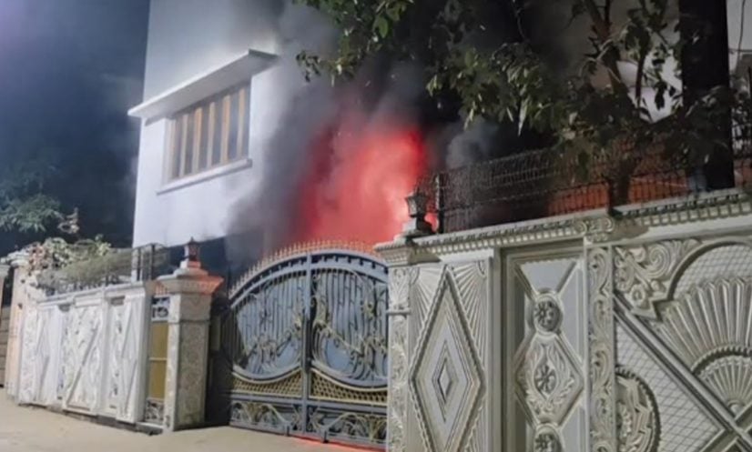 বিক্ষুব্ধরা বাড়ির সামনে থাকা একটি গাড়ি এবং বাড়ির পেছনের ফটক দিয়ে প্রবেশ করে নিচতলার একটি অংশে অগ্নিসংযোগ করেন। পরে প‌রি‌স্থি‌তি খারা‌পের দি‌কে গেলে সেনাবাহিনী, পুলিশ ও ফায়ার সার্ভিসের সদস্যরা ঘটনাস্থলে পৌঁছে পরিস্থিতি নিয়ন্ত্রণে আনে।