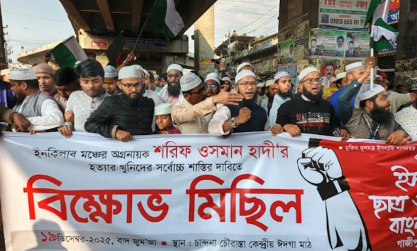 গাজীপুর: ইনকিলাব মঞ্চের মুখপাত্র শরীফ ওসমান হাদির মৃত্যুর ঘটনায় জড়িতদের দ্রুত গ্রেফতার ও দৃষ্টান্তমূলক শাস্তির দাবিতে গাজীপুরে বিক্ষোভ মিছিল অনুষ্ঠিত হয়েছে।