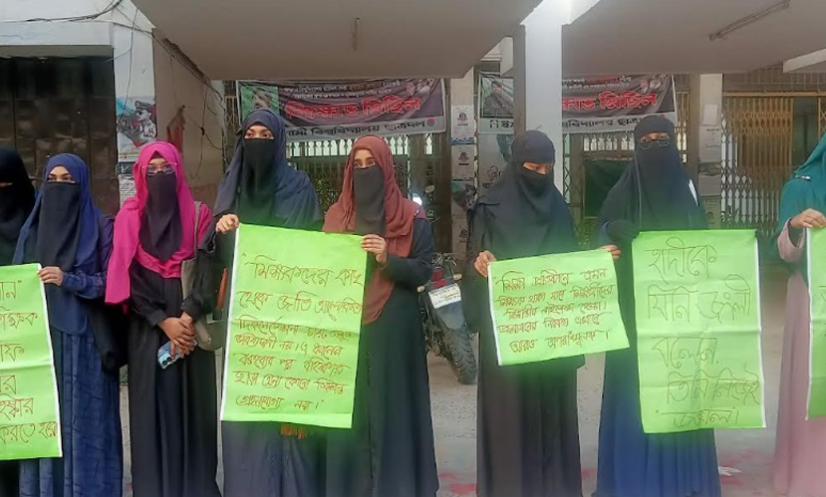 ইবি: ইসলামী বিশ্ববিদ্যালয়ের (ইবি) পরিসংখ্যান বিভাগের সহযোগী অধ্যাপক আলতাফ হোসেন কর্তৃক ইনকিলাব মঞ্চের মুখপাত্র শরিফ ওসমান হাদীকে ‘জংলি’ আখ্যা দেওয়ার প্রতিবাদে মানববন্ধন করেছে বিশ্ববিদ্যালয়ের (ইবি) নারী শিক্ষার্থীরা।