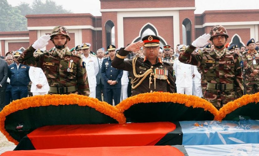এরপর একে একে তিনবাহিনীর পক্ষ থেকে শহিদদের কফিনে শ্রদ্ধা জানানো হয়। এরপর শহিদ ছয় সেনাসদস্যের মরদেহ হেলিকপ্টারযোগে নিজ নিজ জেলার উদ্দেশে রওয়ানা দেয়।