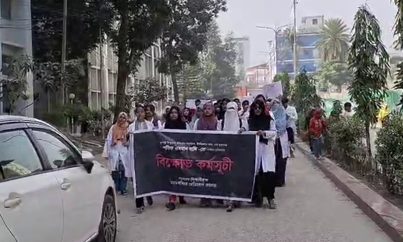 রোববার (২১ ডিসেম্বর) সকালে মেডিকেল কলেজের সামনে থেকে একটি বিক্ষোভ মিছিল বের হয়ে কলেজ ক্যাম্পাস প্রদক্ষিণ করেন শিক্ষার্থীরা।