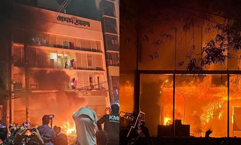 ১৮ ডিসেম্বর প্রথম আলো ও ডেইলি স্টার কার্যালয়ে হামলার ফাইল ছবি।