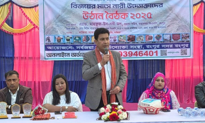 বাংলাদেশের নারী উদ্যোক্তাদের উজ্জ্বল ভবিষ্যতের দিকনির্দেশনা পেতে রংপুর মহানগরীর ২৩ নং ওয়ার্ডের জুম্মাপাড়ায় ‘সর্বজয়া নারী উদ্যোক্তা সংস্থা’ আয়োজন করে এই উঠান বৈঠকের। এতে প্রধান অতিথি হিসেবে উপস্থিত রংপুর-৩ (সদর) আসনের রংপুর মহানগর বিএনপির সদস্য সচিব মাহফুজ উন-নবী ডন।