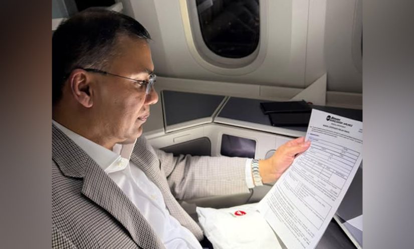 বাংলাদেশে ফেরার পথে বিমানে বিএনপির ভারপ্রাপ্ত চেয়ারম্যান তারেক রহমান।