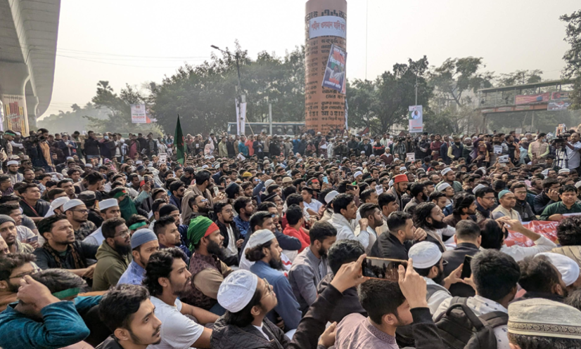 শুক্রবার (২৬ ডিসেম্বর) জুমার নামাজের পর ইনকিলাব মঞ্চের সদস্যরা ও সাধারণ মানুষ রাজধানীর শাহবাগের অবস্থান নেন। এতে যান চলাচল থমকে যায়।