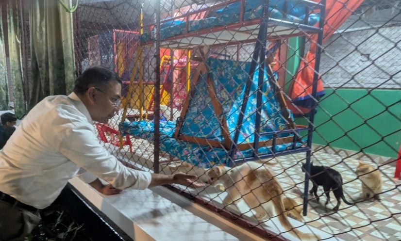 মাহবুব ভবনে কয়েকটি বিড়াল আদর করছেন তারেক রহমান। ছবি: সংগৃহীত