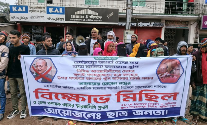 কর্মসূচি শেষে জেলা প্রশাসকের বরাবর একটি স্মারকলিপি দেওয়া হয়। স্মারকলিপিতে উল্লেখ করা হয়, একাধিক মামলার আসামি এবং গণহত্যার অভিযোগে অভিযুক্ত আনোয়ার হোসেন মঞ্জুরকে অবিলম্বে গ্রেফতার করে আইনের আওতায় আনতে হবে এবং তার প্রার্থিতা বাতিল করতে হবে।