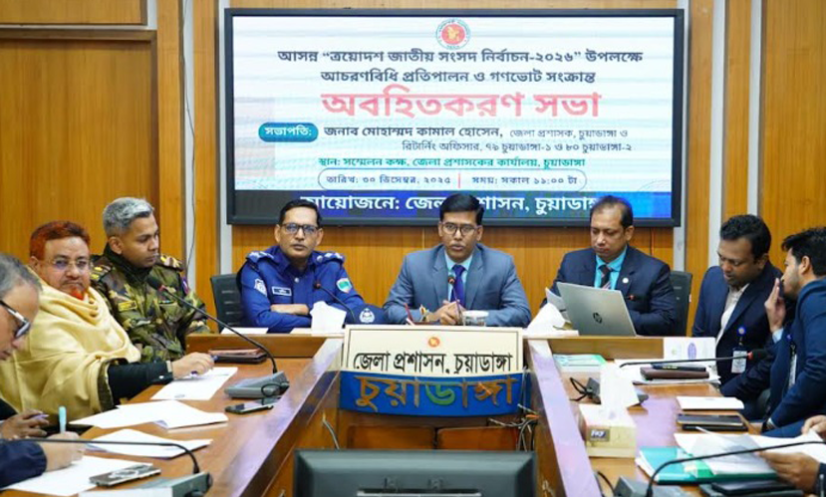 চুয়াডাঙ্গা জেলা প্রশাসক ও রিটার্নিং অফিসার মোহাম্মদ কামাল হোসেনের সভাপতিত্বে অনুষ্ঠিত অবহিতকরণ সভায় পুলিশ সুপার মোহাম্মদ মনিরুল ইসলাম, অতিরিক্ত জেলা ম্যাজিস্ট্রেট বি.এম তারিক-উজ-জামান, সেনাবাহিনীর ক্যাম্প কমান্ডার মেজর সালমান হক ও জেলা নির্বাচন কর্মকর্তা আহমেদ আলীসহ আইনশৃঙ্খলা বাহিনীর সদস্যরা এবং প্রশাসনের কর্মকর্তারা উপস্থিত ছিলেন।