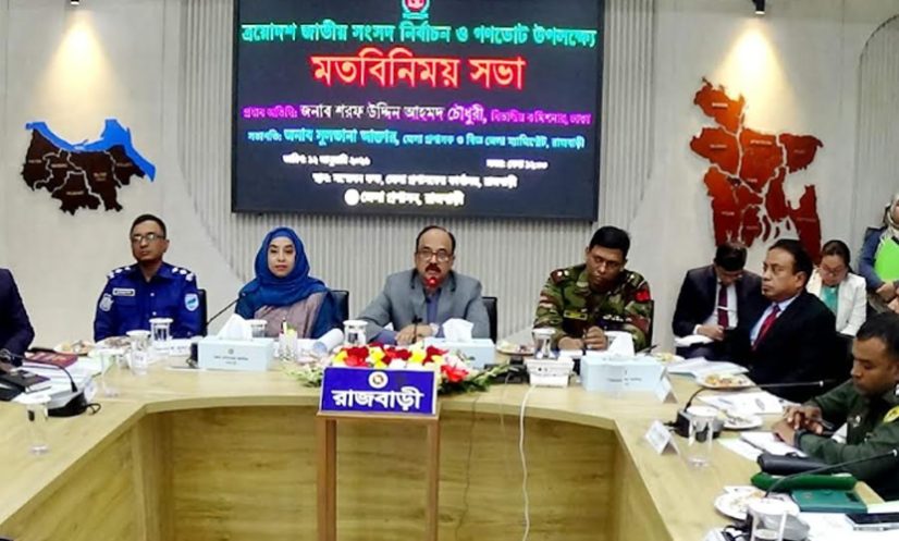 রাজবাড়ী: ঢাকা বিভাগীয় কমিশনার শরফ উদ্দিন আহমদ চৌধুরী বলেছেন, আগামী ১২ ফেব্রুয়ারি একই দিনে অনুষ্ঠিতব্য ত্রয়োদশ জাতীয় সংসদ নির্বাচন ও গণভোটকে সামনে রেখে সুষ্ঠু, নিরপেক্ষ ও উৎসবমুখর পরিবেশ নিশ্চিত করতে সরকার বদ্ধপরিকর।