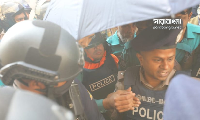 আজ সকালে কঠোর নিরাপত্তার মধ্যে চিন্ময়সহ ২৩ আসামিকে আদালতে হাজির করা হয়। ছবি: সারাবাংলা
