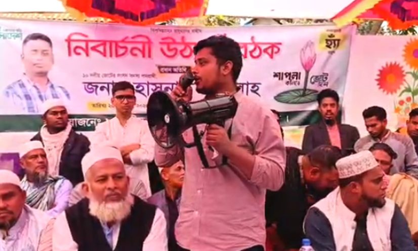 এ সময় আজাদীর জন্য, মাদক, দূর্নীতি ও চাঁদাবাজ মুক্ত সমাজ গড়তে শাপলাকলিতে ভোট চান হাসনাত।
