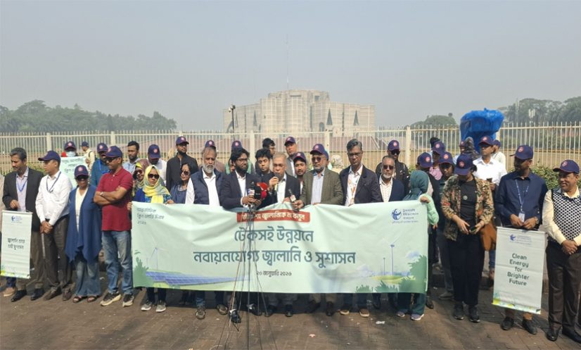 সোমবার (২৬ জানুয়ারি) রাজধানীর মানিক মিয়া অ্যাভিনিউয়ে জাতীয় সংসদ ভবনের সামনে আন্তর্জাতিক ক্লিন এনার্জি দিবস ২০২৬ উপলক্ষ্যে আয়োজিত মানববন্ধনে এ বিষয়টি জানানো হয়। এ সময় নাগরিক সমাজ, নিরপেক্ষ বিশেষজ্ঞ ও সংশ্লিষ্ট অংশীজনের অংশগ্রহণ নিশ্চিত করার মাধ্যমে নবায়নযোগ্য জ্বালানিকে অগ্রাধিকার দিয়ে নির্বাচনে অংশগ্রহণকারী রাজনৈতিক দলগুলোর প্রতি খসড়া ‘এনার্জি অ্যান্ড পাওয়ার সেক্টর মাস্টার প্ল্যান (ইপিএসএমপি) ২০২৫’ সম্পূর্ণভাবে ঢেলে সাজানোর আহ্বান জানান তারা।