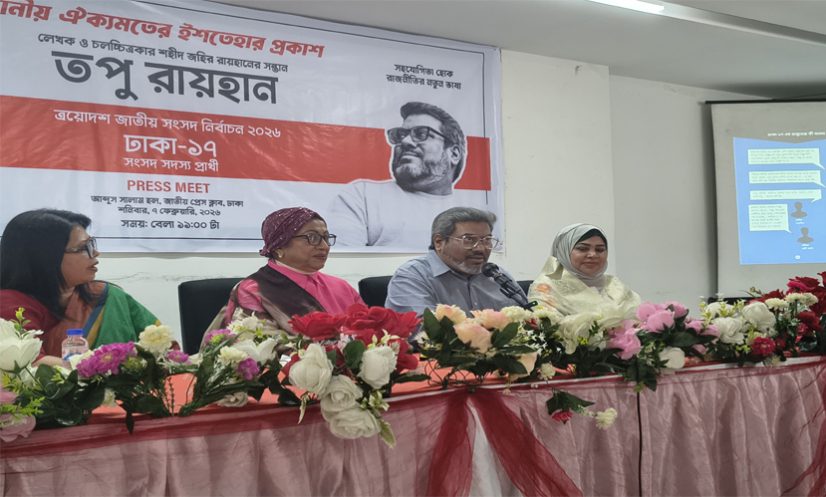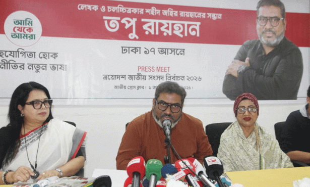 ঢাকা: মুক্তিযুদ্ধোত্তর নিখোঁজ চলচ্চিত্রকার জহির রায়হান-এর সন্তান তপু রায়হান আসন্ন ত্রয়োদশ জাতীয় সংসদ নির্বাচনে ঢাকা-১৭ আসন থেকে প্রতিদ্বন্দ্বিতা করছেন।