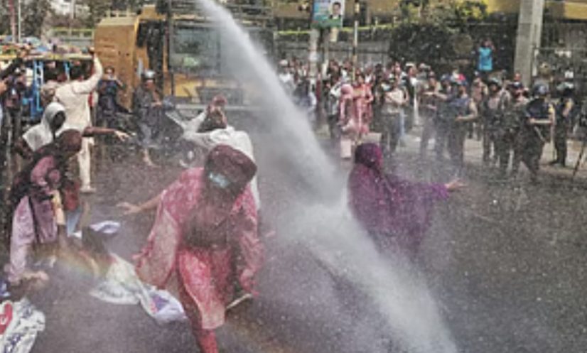 একপর্যায়ে বিক্ষোভকারীরা শাপলা চত্বরে প্রধান সড়ক অবরোধ করলে আইনশৃঙ্খলা রক্ষাকারী বাহিনী জলকামান ব্যবহার করে তাদের সেখান থেকে সরিয়ে দেয়।