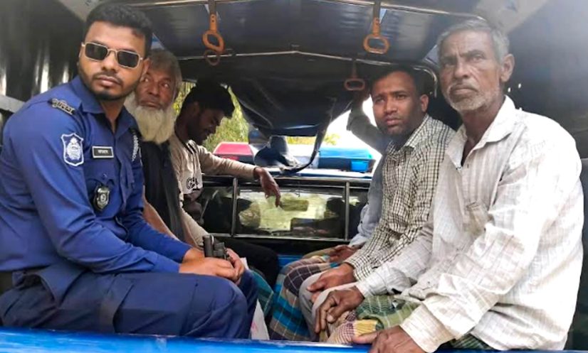 গ্রেফতার ৬ জনকে থানায় নিয়ে যাওয়া হচ্ছে।