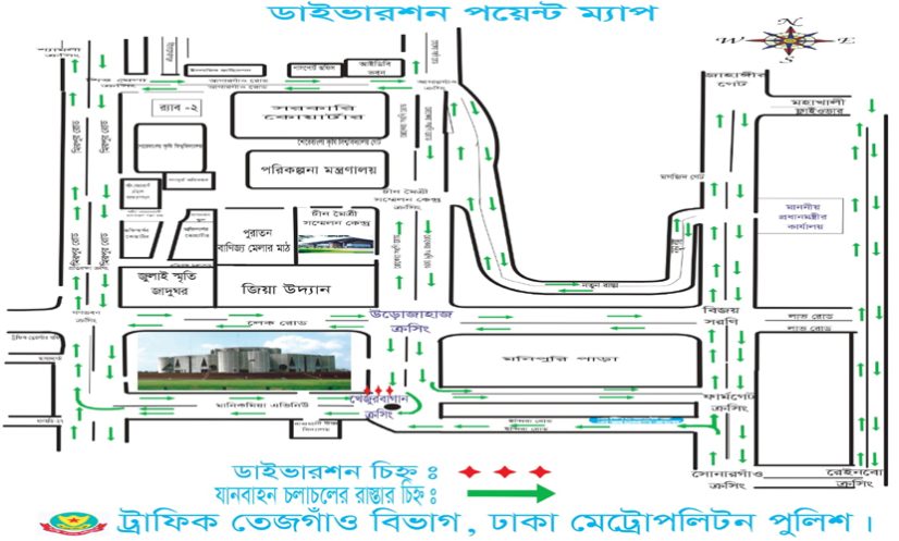 ওই অধিবেশন চলাকালীন উড়োজাহাজ মোড়, খেজুর বাগান, মানিক মিয়া এভিনিউ, আসাদগেট ও জুলাই স্মৃতি জাদুঘর (গণভবন) ক্রসিং দিয়ে স্বাভাবিকের চেয়ে বেশি সংখ্যক যানবাহন চলাচল করবে। ফলে সৃষ্ট সাময়িক অসুবিধা নিরসনকল্পে ঢাকা মেট্রোপলিটন পুলিশের ট্রাফিক বিভাগ কর্তৃক আগামী ১২ মার্চ ডাইভারশনের মাধ্যমে নিম্নোক্তভাবে যান চলাচল নিয়ন্ত্রণ করা হবে।
