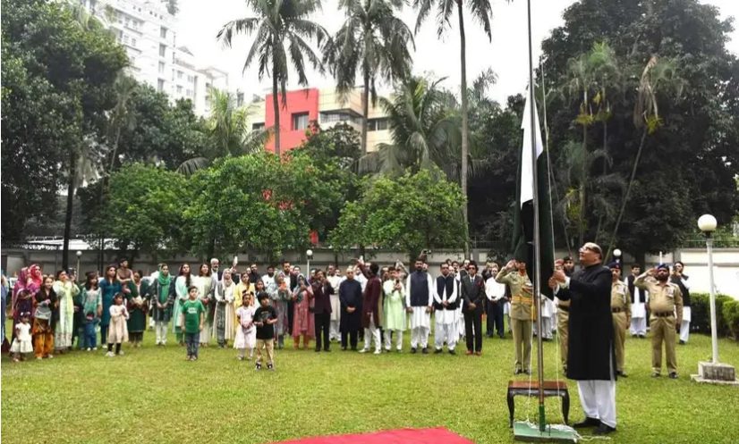 সোমবার (২৩ মার্চ) পাকিস্তানি সম্প্রদায়ের সদস্য, শিক্ষার্থী, সুশীল সমাজের প্রতিনিধি এবং স্থানীয় গণমাধ্যমের উপস্থিতিতে হাই কমিশনার ইমরান হায়দার পতাকা উত্তোলন করেন।