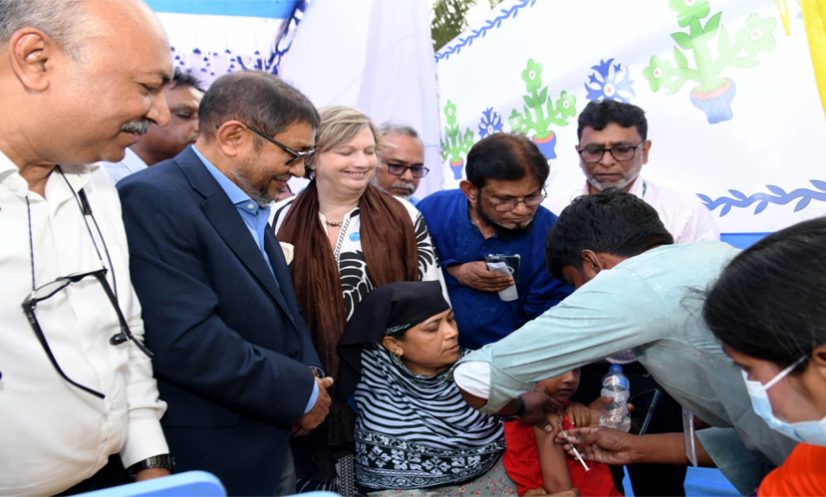 টিকাদান কর্মসূচির উদ্বোধন অনুষ্ঠানে বাংলাদেশে ইউনিসেফের প্রতিনিধি রানা ফ্লাওয়ার্স, বাংলাদেশে বিশ্ব স্বাস্থ্য সংস্থার (ডব্লিউএইচ) প্রতিনিধি ডা. আহমেদ জামশিদ মোহামেদ এবং স্বাস্থ্য অধিদফতরের মহাপরিচালক অধ্যাপক ডা. প্রভাত চন্দ্র বিশ্বাস উপস্থিত ছিলেন।