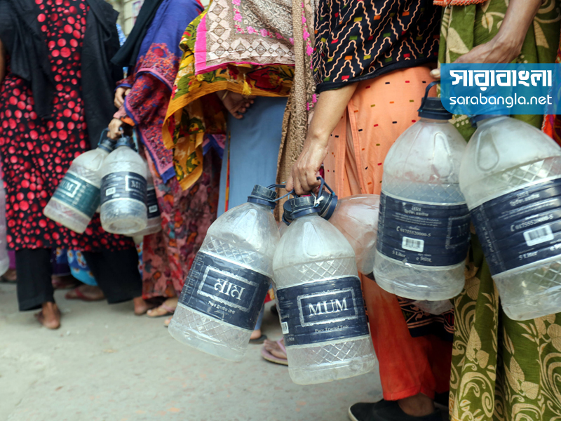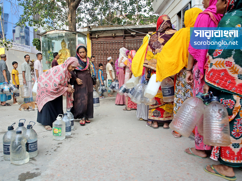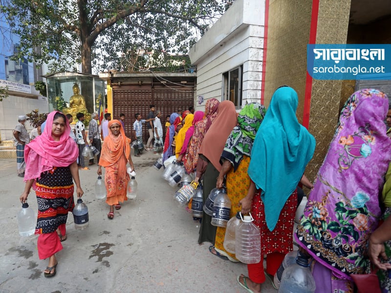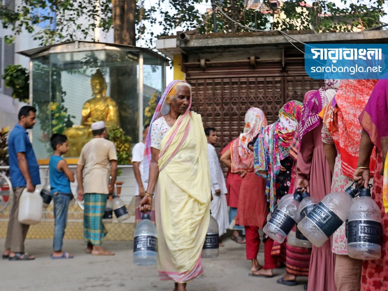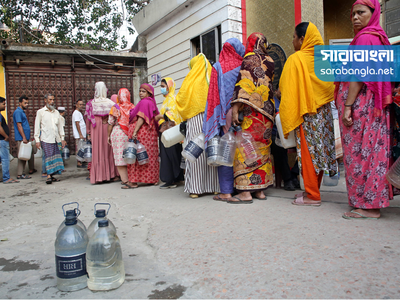 এলাকায় খাবার পানির সমস্যা। তাই দূর-দূরান্ত থেকে এসে দাঁড়াতে হচ্ছে পানির লাইনে। পানির জন্য এলাকাবাসীর এই অপেক্ষা শুরু হয় ভোর ৫টা থেকে। রাজধানীর বাসাবো বৌদ্ধ মন্দির এলাকা থেকে সারাবাংলার সিনিয়র ফটো করেসপন্ডেন্ট হাবিবুর রহমানের তোলা ছবি