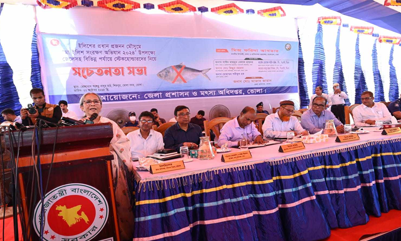 মঙ্গলবার (২২ অক্টোবর) ভোলা জেলা সদরের ভোলার খাল-সংলগ্ন বালুর মাঠে জেলা প্রশাসন ও মৎস্য বিভাগ কর্তৃক আয়োজিত ইলিশের প্রধান প্রজনন মৌসুমে ‘মা ইলিশ সংরক্ষণ অভিযান-২০২৪’ উপলক্ষ্যে জেলেসহ বিভিন্ন পর্যায়ের স্টেকহোল্ডারদের নিয়ে সচেতনতা সভায় প্রধান অতিথির বক্তব্যে তিনি এসব কথা বলেছেন।