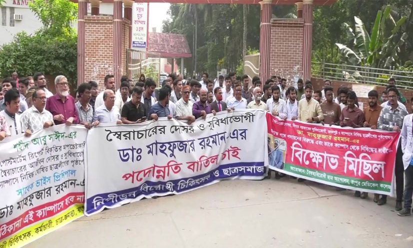 এদিকে রংপুর মেডিকেল কলেজের অধ্যক্ষ ডা. মাহফুজার রহমানের বিরুদ্ধে ষড়যন্ত্রের প্রতিবাদে আজ (৩ নভেম্বর) দুপুরে রংপুর প্রেসক্লাবের সামনে মানববন্ধন কর্মসূচির ডাক দিয়েছে ‘সচেতন রংপুরবাসী-শিক্ষার্থীরা’ নামে এক অংশ।