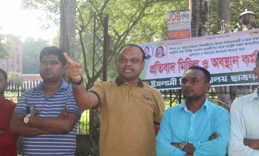 রোববার (১০ নভেম্বর) দুপুর সাড়ে ১২টার দিকে প্রতিবাদ মিছিল ও অবস্থান কর্মসূচি শেষে বক্তব্য প্রদানকালে তিনি এই কথা বলেন। শিক্ষার্থীদের ওপরে নির্যাতনকারী নিষিদ্ধ সংগঠন ছাত্রলীগের সঙ্গে জড়িত সকল অপরাধীদের দ্রুত গ্রেফতার ও বিচারের দাবিতে এই কর্মসূচি করেন তারা। ক্যাম্পাসের অনুষদ ভবনের সামনে থেকে শুরু হওয়া এই মিছিল প্রধান ফটকের সামনে গিয়ে শেষ হয়।