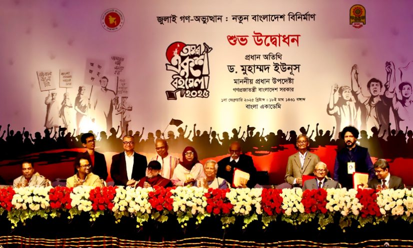 ঢাকা: পর্দা উঠল অমর একুশে বইমেলার। শনিবার (১ ফেব্রুয়ারি) বিকেল ৪ টায় অন্তর্বর্তী সরকারের প্রধান উপদেষ্টা ড. মুহাম্মদ ইউনূস মাসব্যাপী এ বইমেলার আনুষ্ঠানিক উদ্বোধন করেন। উদ্বোধনী অনুষ্ঠানে সংস্কৃতি উপদেষ্টা মোস্তফা সরোয়ার ফারুকী, বাংলা একাডেমির মহাপরিচালক মোহম্মদ আজম, সচিব ড. মোহম্মদ সেলিম রেজা, মেলা পরিচালনা কমিটির সদস্য সচিব ড. সরকার আমিন উপস্থিত ছিলেন।