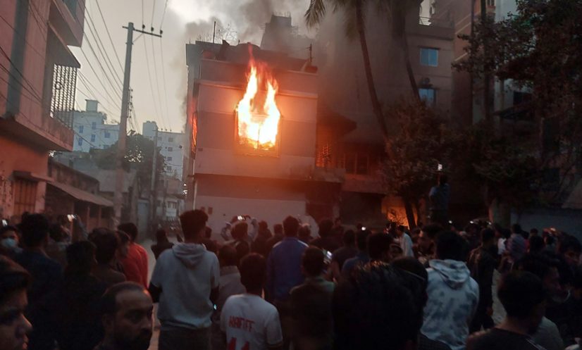 পর বিক্ষুদ্ধ ছাত্র-জনতা শহরের পোষ্ট অফিসপাড়ায় সাবেক খাদ্যমন্ত্রী সাধন চন্দ্রের বাসায় আগুন লাগিয়ে দেয় এবং বুলডোজার দিয়ে বাসার সামনের গেট ভেঙে ফেলে।