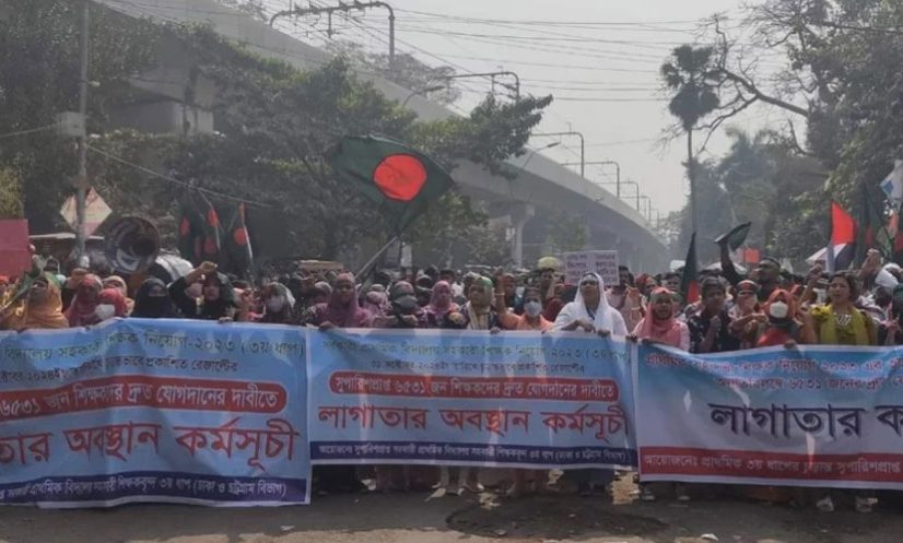 ঢাকা: সরকারি প্রাথমিক বিদ্যালয়ে শিক্ষক পদে তৃতীয় ধাপের নিয়োগ বাতিলের প্রতিবাদে এবং দ্রুত নিয়োগ দেওয়ার দাবিতে রাজধানীর শাহবাগে অবস্থান নিয়েছেন প্রাথমিকের সুপারিশপ্রাপ্তরা।