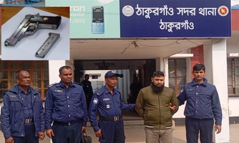 ঠাকুরগাঁও: ঠাকুরগাঁওয়ে পুলিশের বিশেষ অভিযানে বিদেশি পিস্তলসহ সোহেল রানা (৩৩) নামে ডাচ বাংলা এজেন্ট ব্যাংকের এক কর্মকর্তাকে আটক করা হয়েছে।