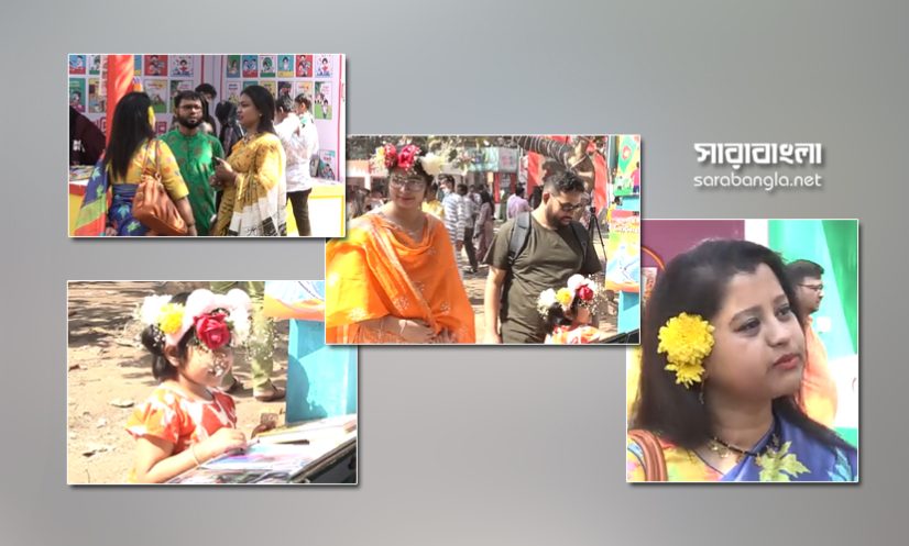ঢাকা বিশ্ববিদ্যালয়ের শিক্ষার্থী সাবরিনা প্রিয়ন্তী, লাল ও হলুদ রংয়ের শাড়ি পরনে। খোপায় গাঁদা ফুলের মালা। গলায় ও কানে পরেছে সোনালী রংয়ের গহনা। হাতে লাল-হলুদ ও সোনালী রংয়ের রেশমি চুড়ি। প্রিয়ন্তী সারাবাংলাকে বলেন, ‘ফেব্রুয়ারি মাস এলেই মনে হয় যেন বসন্ত চলে এসেছে। তাই এই মাসে একুশে ফেব্রুয়ারি শহিদ দিবস বাদে বেশির ভাগ আয়োজনেই বাসন্তী সাজ সাজা হয়। আর বই মেলাতো আমাদের বাঙালির একটি কৃষ্টিতে পরিণত হয়েছে। সেই বইমেলায় বাঙালি সাজে আসতেই ভালো লাগে। নতুন বইয়ের মোড়কেও কেমন যেন বসন্তের ফুলের মতো ঘ্রাণ পাওয়া যায়। তাই যতবারই বই মেলায়া আসি, এভাবে বাসন্তী ও বাঙালিয়ানা সাজেই আসি।’