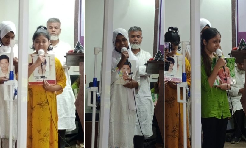 ঢাকা: ‘বাবা তুমি কোথায় আছো? ভেবেছিলাম আমাদের বাবা আয়না ঘরে আছে। কিন্তু সেখানেও খুঁজে পাচ্ছি না। প্রায় এক যুগ বাবাকে না দেখেই বড় হয়ে যাচ্ছি। বাবা তোমার হাতটি একটু ধরতে চাই। তুমি কি আসবে না, বাবা বলে ডাকতে পারব না?’ অঝরে কান্না করে এভাবেই বাবাকে খুঁজে বেড়ানোর কথা বলছিলেন গুমের শিকার ভিকটিমদের শিশু কন্যারা।