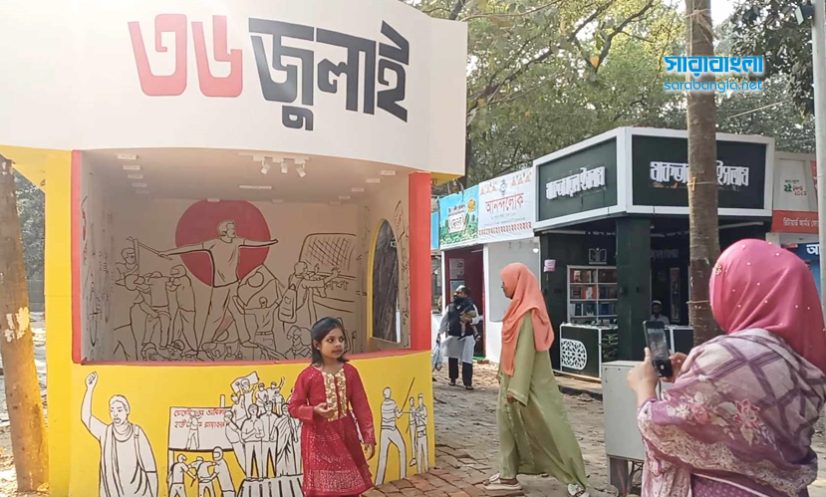 সোহরাওয়ার্দি উদ্যানের বইমেলায় ঢুকেই, হাতের বামে তথ্যকেন্দ্রের পরের স্টলটিই ‘৩৬ জুলাই’। যেখানে গেলে থমকে দাঁড়িয়ে পড়তে হয় কিছু সময়ের জন্য। মানুষ যেনো হারিয়ে যায় ২০২৪ এর, জুলাই আগস্টের সেই ভয়াবহ দিনগুলোতে।