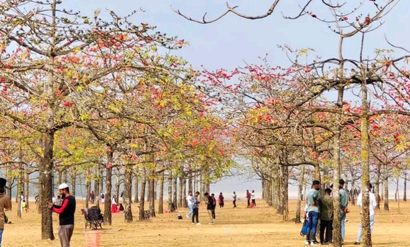 পাহাড়ি নদী জাদুকাটার তীরের এ শিমুলবাগানের গাছে গাছে রক্তরাঙা লাল শিমুল ফুলে সবাই মুগ্ধ। বসন্তের হাওয়ায় ভারতের মেঘালয় খাসিয়া পাহাড় থেকে এসে দোলা দিচ্ছে বাগানের প্রতিটি শিমুল ফুলের গাছে। সে হাওয়ায় ঝরে পড়ছে রক্তরাঙা লাল শিমুল ফুল। সে ফুল কুঁড়ায় বালক বালিকারা দলবেঁধে ছুটছে এক প্রান্ত থেকে অন্য প্রান্তে ।