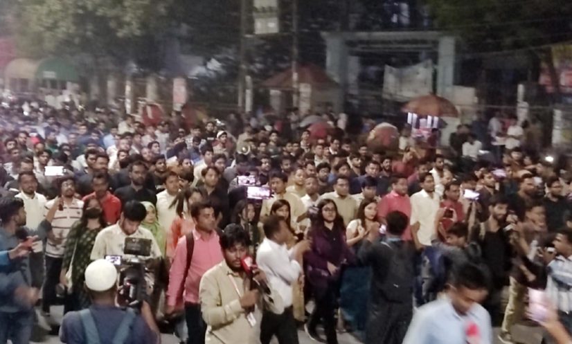 বৃহস্পতিবার (২০ ফেব্রুয়ারি ) সন্ধ্যা ৭টায় ঢাকা বিশ্ববিদ্যালয়ের টিএসসি থেকে বিক্ষোভ মিছিলটি শুরু হয়ে বিশ্ববিদ্যালয়ের বিভিন্ন এলাকা প্রদক্ষিণ করে ফের টিএসসি এসে সংক্ষিপ্ত সমাবেশের মাধ্যমে শেষ হয়। এ সময় বিক্ষুব্ধ ছাত্রদল নেতাকর্মীদের ‘সিলেটে হামলা কেন, প্রশাসন জবাব চাই’, ‘গুপ্ত রাজনীতি চলবে না, চলবে না’, ‘রগ কাটার রাজনীতি বাংলাদেশে চলবে না’ ইত্যাদি স্লোগান দিতেও দেখা যায়।