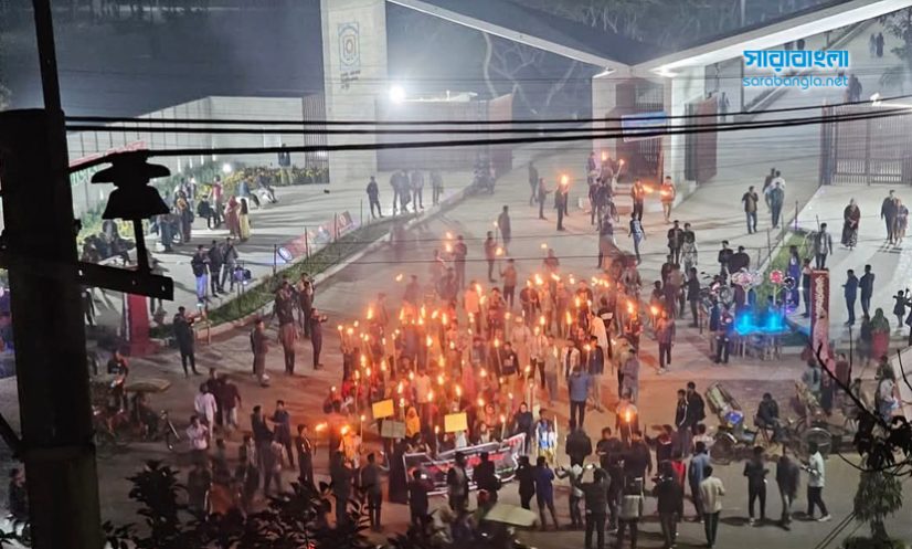 বুধবার (২৬ ফেব্রুয়ারি) রাতে বেগম রোকেয়া বিশ্ববিদ্যালয়ের প্রধান ফটকের সামনে মশাল মিছিল শুরু হয়। এতে বেগম রোকেয়া বিশ্ববিদ্যালয়সহ পার্শ্ববর্তী বিভিন্ন শিক্ষাপ্রতিষ্ঠানের শিক্ষার্থীরা অংশ নেন। মিছিলটি পার্কমোড় হয়ে রংপুর-ঢাকা মহাসড়ক প্রদক্ষিণ করে খামার মোড় ঘুরে প্রধান ফটকে এসে শেষ হয়।