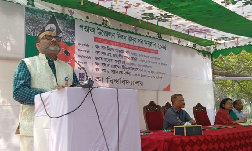 রোববার (২ মার্চ) ঢাকা বিশ্ববিদ্যালয়ের ঐতিহাসিক বটতলায় ‘পতাকা উত্তোলন দিবস’ উপলক্ষে আয়োজিত অনুষ্ঠানে তিনি এ মন্তব্য করেন।