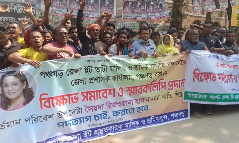 পঞ্চগড়: হাইকোর্টের রিট পিটিশনের নির্দেশনা অনুযায়ী সকল অবৈধ ইট ভাটার বিরুদ্ধে ব্যবস্থা গ্রহণ সংক্রান্ত সভার প্রেক্ষিতে সিদ্ধান্তের প্রতিবাদে ও ইটভাটা বন্ধ না করার জন্য এবং পরিবেশ উপদেষ্টা সৈয়দা রিজওয়ানন হাসানের পদত্যাগের দাবিতে বিক্ষোভ মিছিল ও স্মারকলিপি প্রদান করা হয়েছে।