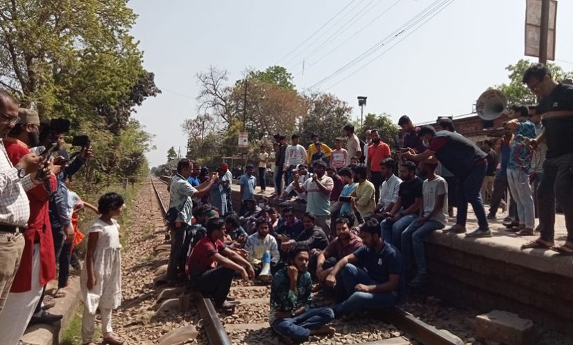 বুধবার (৫ মার্চ) বেলা সাড়ে ১১টা থেকে বিশ্ববিদ্যালয়ের স্টেশন বাজার সংলগ্ন রেললাইন অবরোধ করে বিক্ষোভ করতে থাকেন শিক্ষার্থীরা। এতে রাজশাহীর সঙ্গে সারাদেশের রেলযোগাযোগ বন্ধ হয়ে যায়।