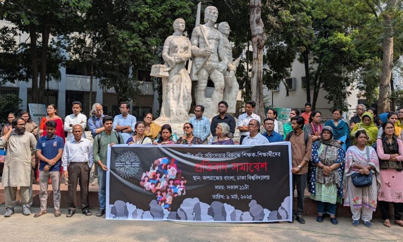 ঢাবি: নারীর প্রতি সহিংসতার বিরুদ্ধে প্রতিবাদ সমাবেশ করেছেন ঢাকা বিশ্ববিদ্যালয়ের বাম মতাদর্শের শিক্ষকদের সংগঠন শিক্ষক নেটওয়ার্ক। এতে বিভিন্ন বিভাগের শিক্ষার্থীরাও অংশগ্রহণ করেছেন।