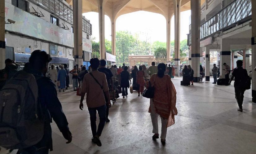 রোববার (৬ এপ্রিল) রাজধানীর কমলাপুর স্টেশনে দেখা গেছে শনিবারের মতো এদিনও ঢাকামুখী যাত্রীদের ভিড়।