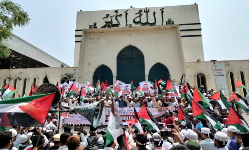 বিক্ষোভ মিছিল ও সমাবেশে তারা ‘ফিলিস্তিন জিন্দাবাদ, ফিলিস্তিন জিন্দাবাদ’, ‘ফ্রি ফ্রি ফিলিস্তিন’, ‘ইসরায়েলের কালো হাত, ভেঙে দাও ভেঙে দাও’ ইত্যাদি স্লোগানে মুখর করে তোলেন মসজিদের উত্তর পাদদেশ। এ সময় আগত মুসল্লিদের অনেকের হাতেই ছিল ফিলিস্তিনের পতাকা। মিছিল-পূর্ব সমাবেশে শীর্ষ ওলামা মাশায়েখ এবং জাতীয় নেতাদের বক্তব্য দেওয়ার কথা রয়েছে।