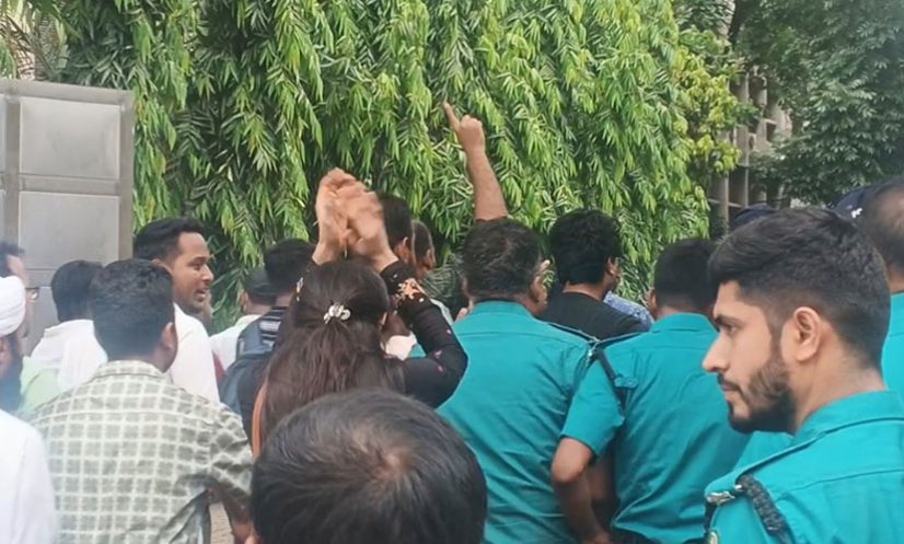 ঢাকা: নিজেদের দাবি আদায়ের এক পর্যায়ে পুলিশের বাধা উপেক্ষা করে বাংলাদেশ সরকারি কর্ম কমিশনের (পিএসসি) গেট ভেঙ্গে ভেতরে ঢুকে পড়েছেন বিসিএস প্রার্থীরা। এ ঘটনায় বাড়তি নিরাপত্তা জন্য পিএসসিতে সেনা বাহিনী মোতায়েন করা হয়েছে। পরিস্থিতি নিয়ন্ত্রণে কাজ করছেন সেনা সদস্যরা।