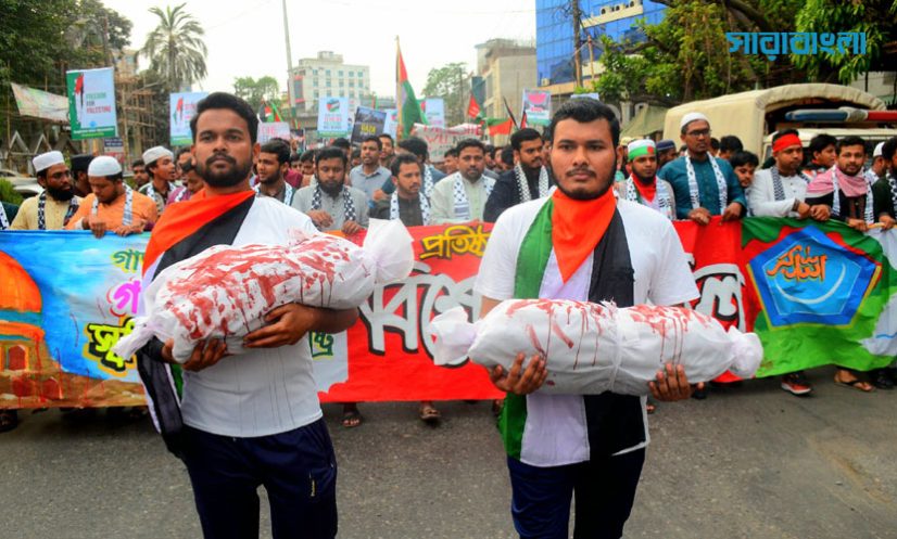 চট্টগ্রাম ব্যুরো : ফিলিস্তিনে ইসরাইলি গণহত্যার প্রতিবাদে চট্টগ্রামে বিক্ষোভ ও সমাবেশ করেছে ইসলামী ছাত্রশিবির। ফিলিস্তিন নাগরিকের রক্তাক্ত প্রতীকী লাশ নিয়ে এ মিছিলের মধ্য দিয়ে তুলে ধরা হয়েছে ইসরাইলি বাহিনীর নৃশংসতার চিত্র।