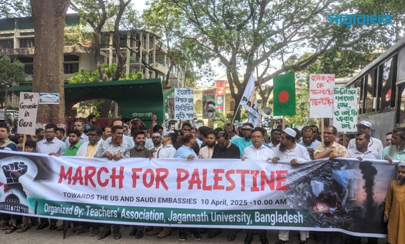 জবি: গাজায় ইসরায়েলি বাহিনীর চলমান গণহত্যার প্রতিবাদে ও ফিলিস্তিনের সমর্থনে ‘মার্চ ফর প্যালেস্টাইন’ কর্মসূচি শুরু করেছেন জগন্নাথ বিশ্ববিদ্যালয়ের শিক্ষক, শিক্ষার্থী, কর্মকর্তা ও কর্মচারীরা। পদযাত্রা শেষে যুক্তরাষ্ট্র ও সৌদি দূতাবাসে স্মারকলিপি দেওয়া হয়।